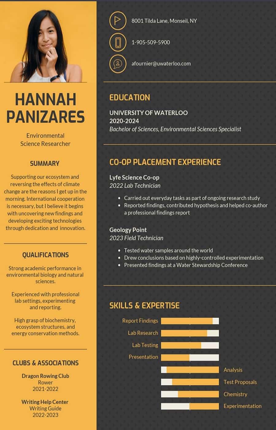 A graphical presentation of your profile and experience using charts, graphs, timelines, logos, and other creative visual elements.